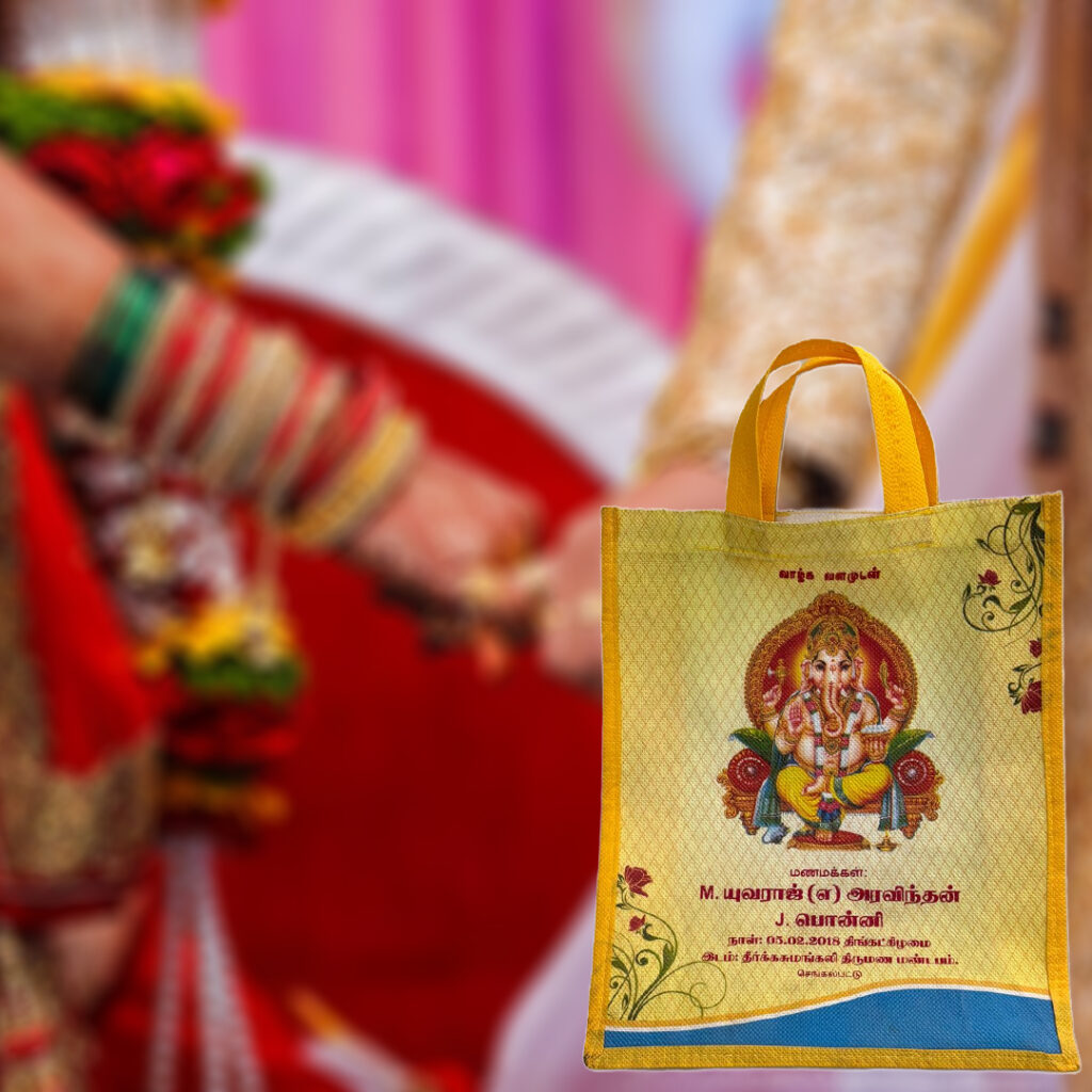Our customized thamboolam bags combine tradition, durability, and style for weddings, religious ceremonies, and festive events. Made from premium, eco-friendly materials, these best thamboolam bags are designed to make a lasting impression. Whether you’re looking for customized thamboolam bags for a special event or ceremony, our bags ensure elegance and functionality. We offer high-quality, durable, and eco-friendly solutions that beautifully blend cultural significance with modern design.